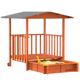 Der Sandkasten ist aus massivem Fichtenholz gefertigt und mit umweltfreundlicher, wasserlöslicher Lasur behandelt. Die große Spiele-Kombination mit Veranda wird Dein Kind begeistern. Die Stoff-Bedachung des Sandkasten bietet einen UV-Schutzfaktor 50+ und schützt vor leichtem Nieselregen.