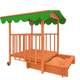 Die Konstruktion des Sandkastens besteht aus massivem Kiefernholz und ist bereits vorimprägniert! Die Veranda lässt sich mühelos mit zwei Rädern über den Sandkasten schieben, was optimalen Schutz vor Wetter und unerwünschten Besuchern, wie zum Beispiel Katzen, bietet.
